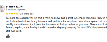 Your feedback helps us improve our service and helps others make informed decisions about their vehicle transportation needs.